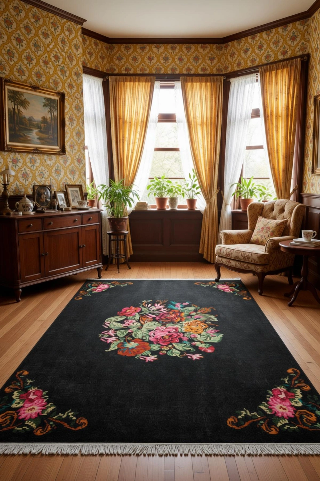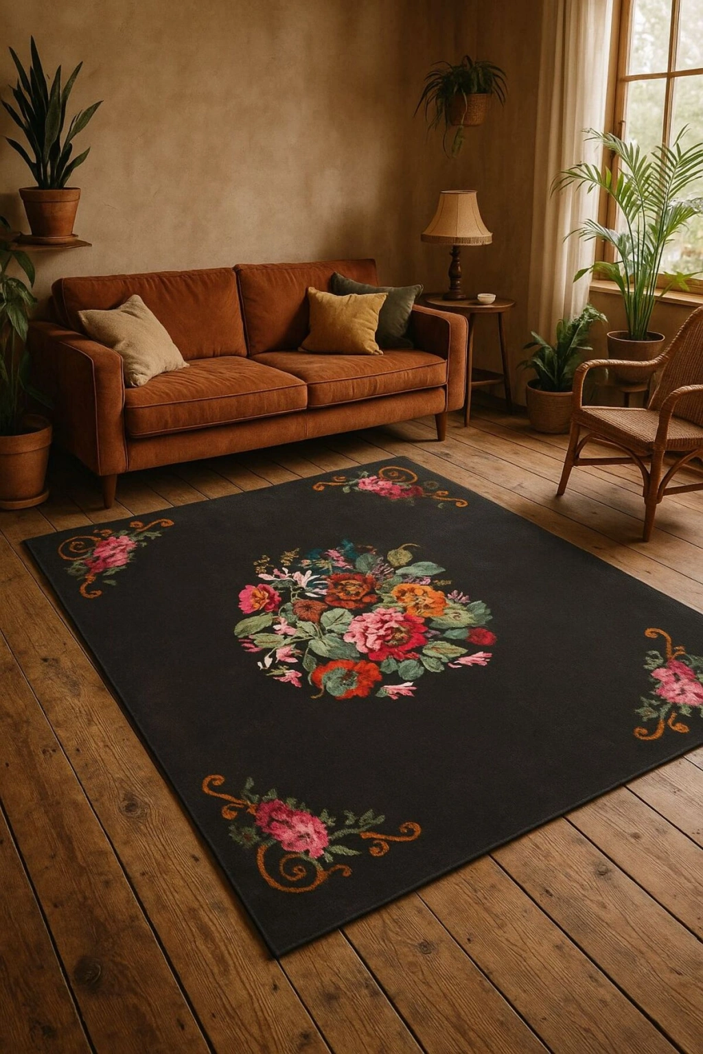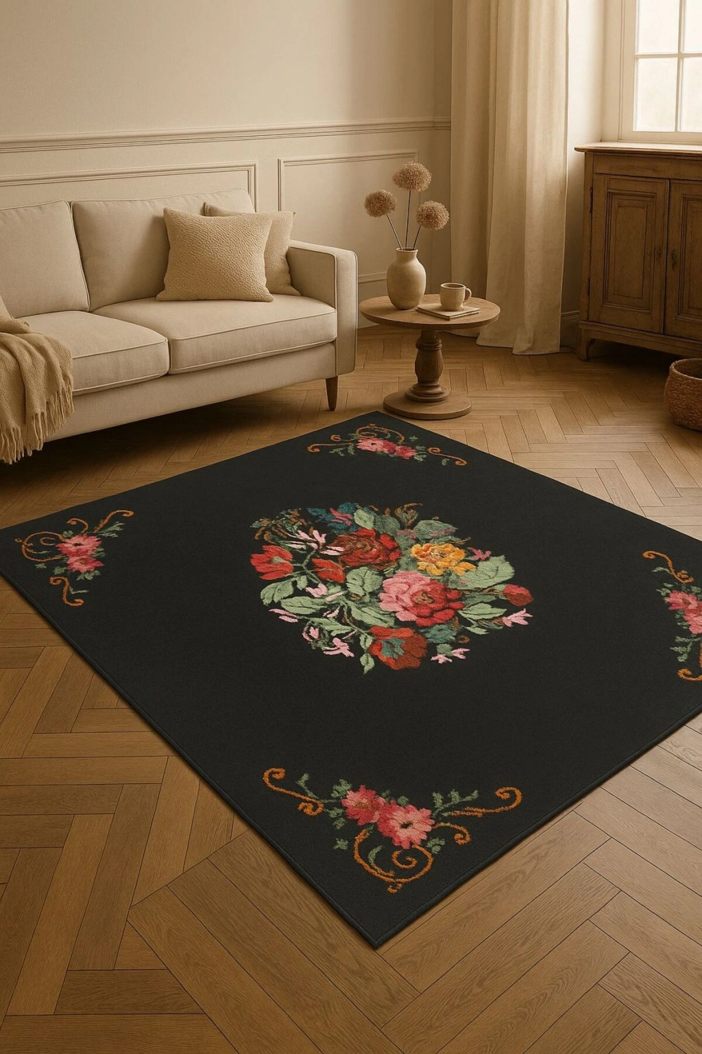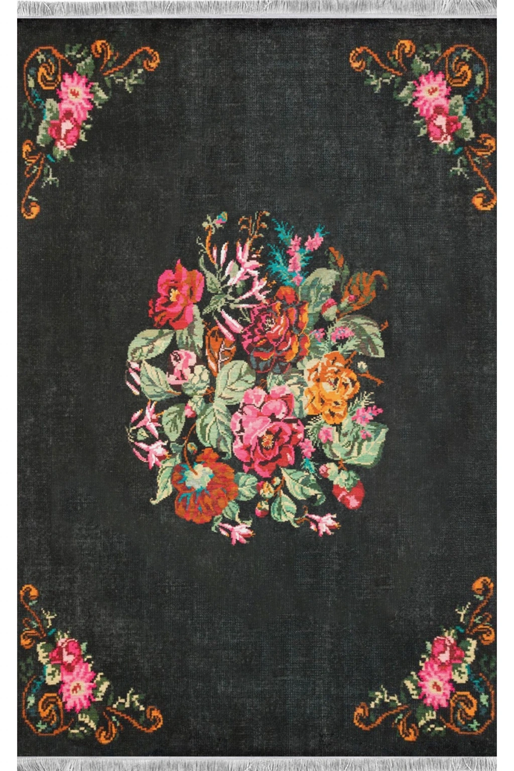 Modern dekorasyonun vazgeçilmez parçası olan bu çiçek motifli halı, salon veya oturma odanızda şıklığı ve konforu bir arada sunar.; Dikdörtgen şekliyle mekanınıza kolayca uyum sağlar ve geniş alanları dahi estetik bir şekilde kaplar.; Makine halısı üretim tekniği sayesinde uzun ömürlü kullanım vaat ederken, düz saçak detayı ile modern çizgilere sahiptir.; Dokuma taban yapısı, dayanıklılığı artırarak halının formunu korumasına yardımcı olur; böylece her kullanımda aynı kaliteyi sunar.; Orta hav yüksekliği (6 - 12 mm),hem yumuşak bir dokunuş hissi verir hem de temizlik açısından pratiklik sağlar.; Bambu materyali doğal güzelliği evinize taşırken, kaymaz taban özelliği güvenliğinizi ön planda tutar.; Zamansız bir görünüm sergileyen bu halı, dekoratif kilim olarak da tercih edilebilir.;