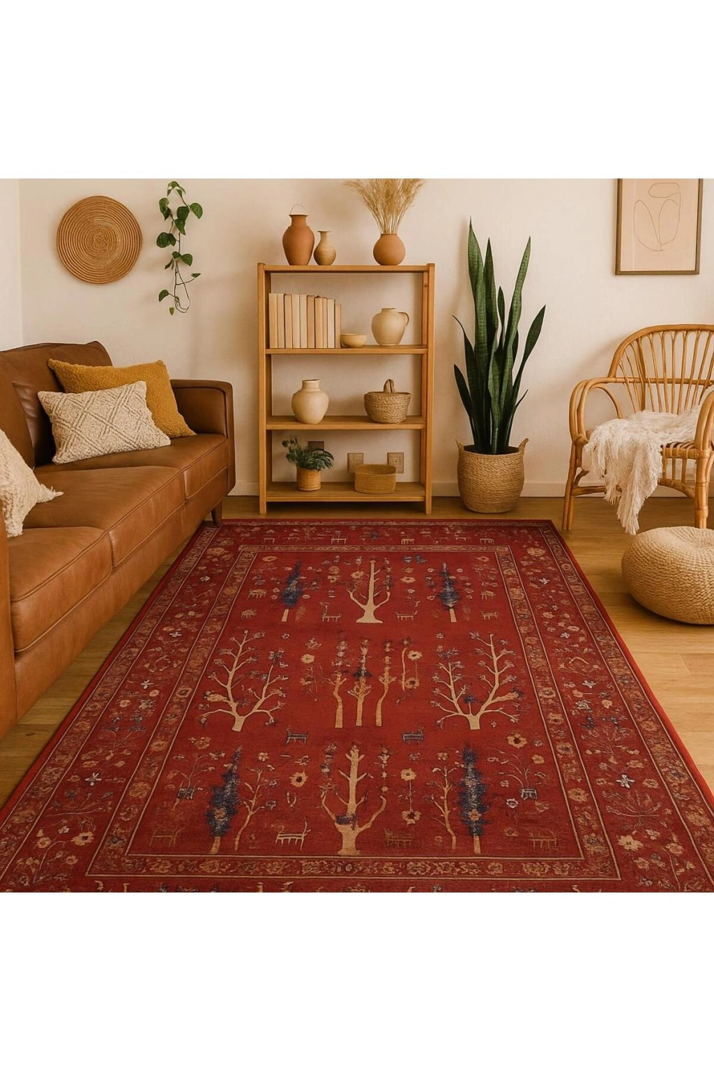 30 derecede sıkma yapmadan yıkama imkanı sunarak kolay temizlik sağlar.; Dokuma tabanı, dayanıklılığı artırırken zeminde sabit durmasını sağlar.; Dikdörtgen şekliyle çeşitli oda düzenlerine uyum sağlayacak şekilde tasarlanmıştır.; Eskitme deseniyle vintage ve bohem tarzını evinize taşır.; Makine halısı üretim tekniği kullanılarak üretilmiştir; uzun ömürlü kullanım vaat eder.; Düz saçak detayı modern ve şık bir görünüm kazandırır.; Kaymaz taban özelliği ile güvenli adımlar atmanız için idealdir.; Salon veya oturma odası gibi geniş alanlarda estetik bir dekoratif obje olarak kullanılabilir.;