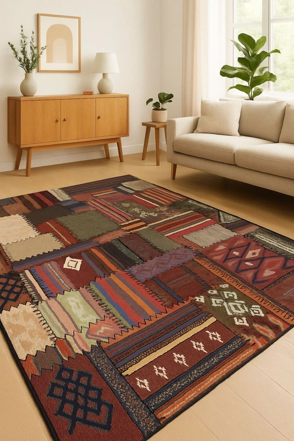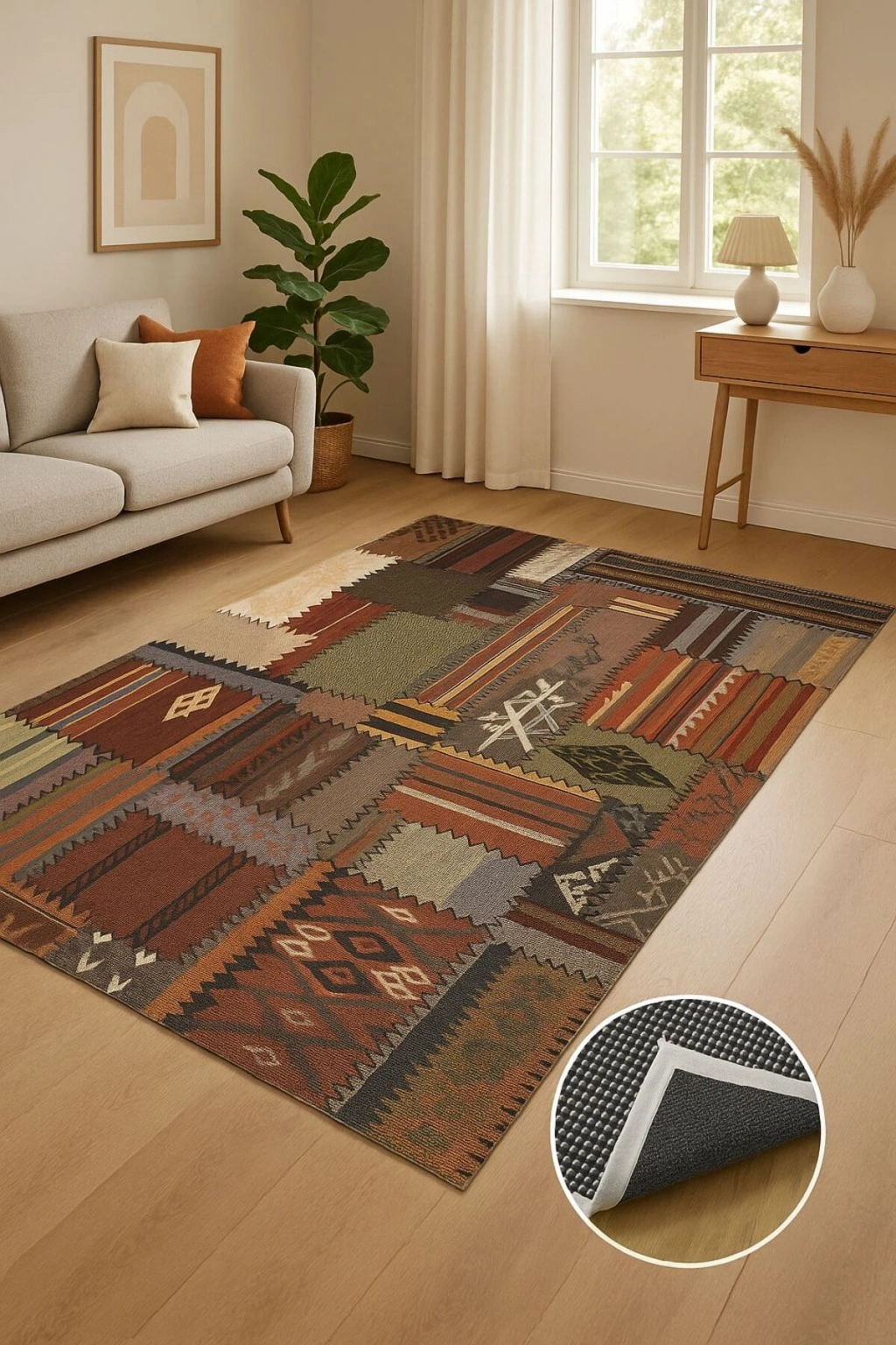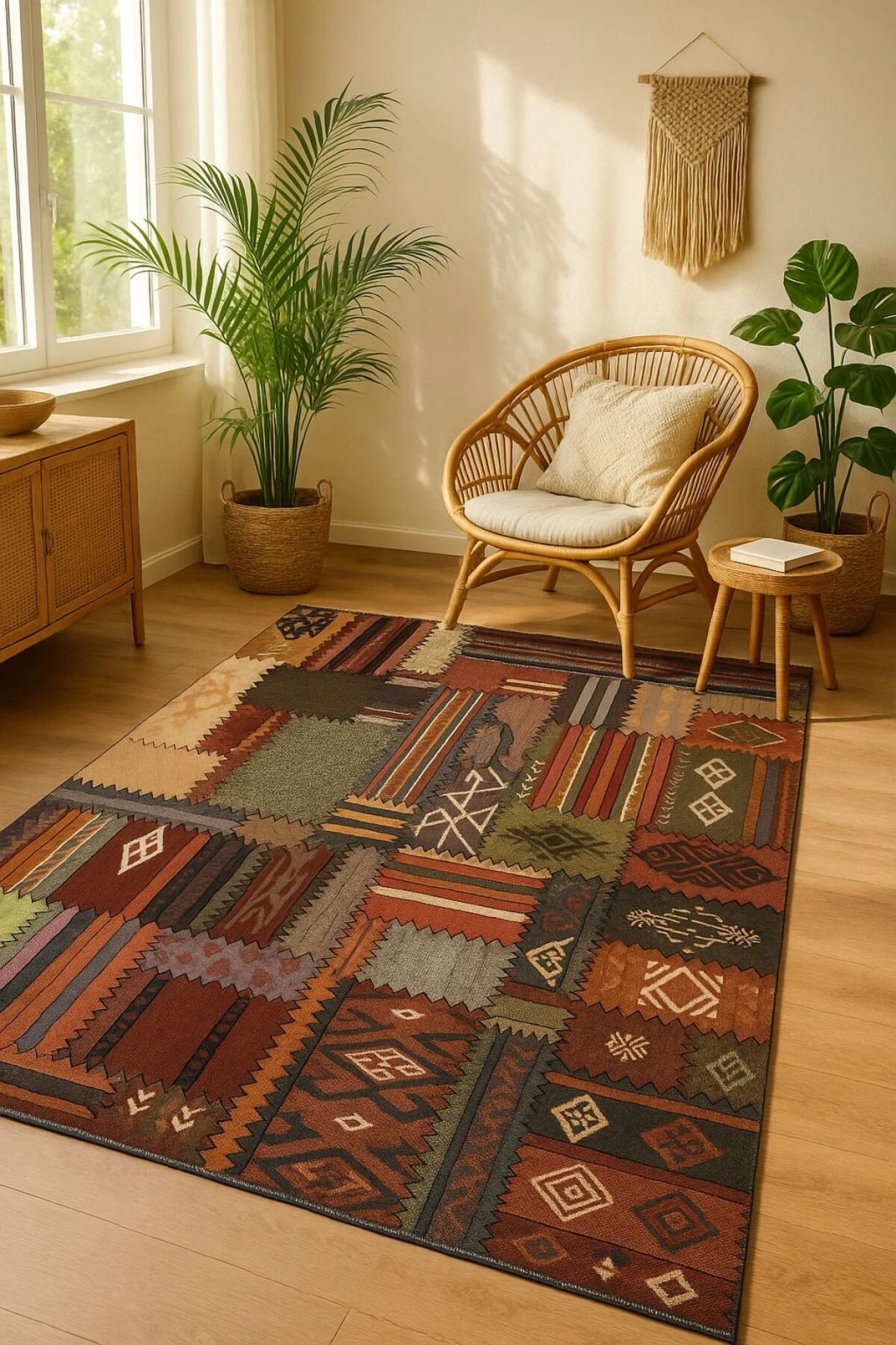 Modern dekorasyonun vazgeçilmez parçası olan bu halı, mekanınıza şıklık katıyor.; Bambu materyali sayesinde doğal bir dokunuş sunarken, antialerjik yapısıyla alerji riskini minimize ediyor.; Orta hav yüksekliği (6 - 12 mm) ile konforlu bir yürüyüş deneyimi sağlıyor ve kolay temizlenebilir özelliğiyle pratik kullanım sunuyor.; Dikdörtgen şekliyle çeşitli oda düzenlerine uyum sağlayarak fonksiyonel bir alan oluşturmanızı mümkün kılıyor.; Düz saçak detayı ile modern ve minimalist tasarım anlayışına sahip evinizdeki diğer mobilya ve aksesuarlarla kolayca uyum sağlıyor.; Salon veya oturma odası gibi yaşam alanlarınıza estetik bir katkıda bulunurken aynı zamanda rahatlık da sunuyor.;