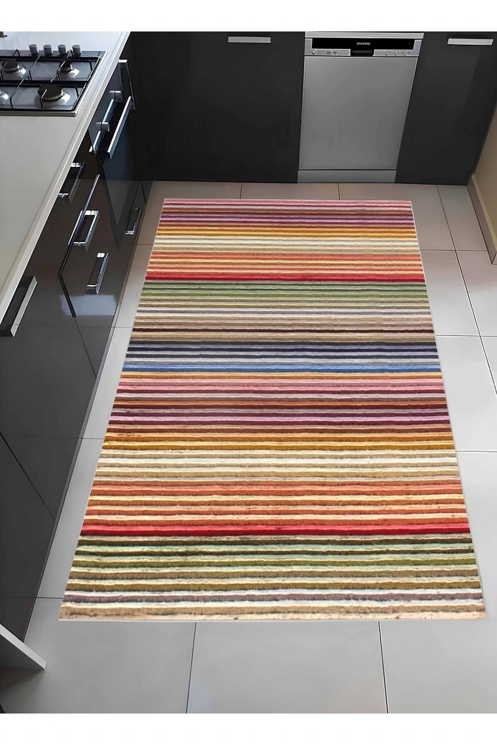 - Modern dekorasyonun vazgeçilmez parçası olan bu halı, renkli çizgileriyle mekanınıza canlılık katar.; - Dikdörtgen şekli sayesinde çeşitli oda düzenlerine kolayca uyum sağlar ve şık bir görünüm sunar.; - Düz saçak detayı ile modern tasarım anlayışını yansıtan bu kilim, sade ve zarif bir dokunuş ekler.; - Dokuma taban yapısı sayesinde zeminde sabit dururken, ortamınızda konforlu bir his bırakır.; - Orta hav yüksekliği (6 - 12 mm),hem rahat adımlar atmanızı sağlar hem de temizlik açısından pratiklik sunar.; - Bambu materyali doğal güzelliği evinize taşırken aynı zamanda çevre dostu bir seçimdir.; - Yıkanabilir özelliği ile bakımı kolaydır; böylece uzun süre ilk günkü gibi kullanabilirsiniz.; - Salon veya oturma odası gibi geniş alanlarda ideal kullanım alanı sunarak mekanınızın atmosferini zenginleştirir.;