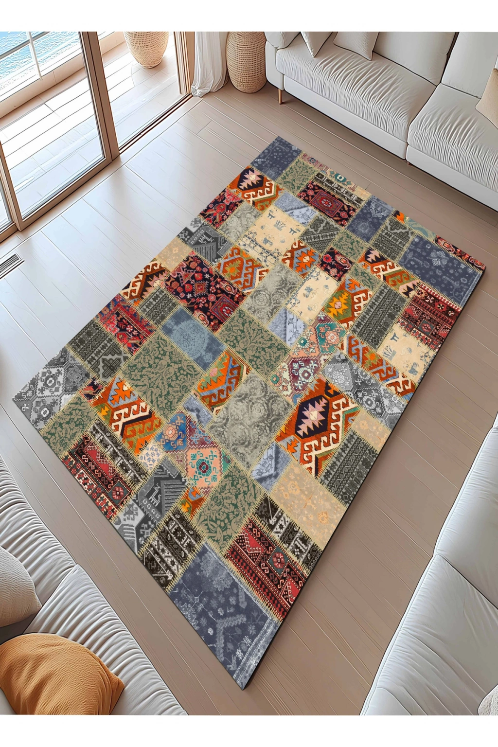 Modern dekorasyonun vazgeçilmez parçası olan bu halı, renkli patcwork deseniyle mekanınıza canlılık katar.; Dikdörtgen şekli sayesinde çeşitli oda düzenlerine kolayca uyum sağlar ve şık bir görünüm sunar.; İTHAL YÜKSEK HAVLI BAMBU KUMAŞ NANO TEKNOLOJİYLE ÜRETİLMİŞ OLUP HALI DUYGUSU VEREN HAVLI BİR YÜZEYE SAHİPTİR.; HİÇBİR ZEMİNDE KAYMA YAPMAZ.; KIL TOZ TÜY TOPLAMAZ TEMİZLENMESİ ÇOK KOLAYDIR.; SABUNLU BEZ İLE BİLE SİLİNİP TEMİZLENEBİLİR.; 30 DERECEDE MAKİNADA YIKANABİLİR DÖKÜLME YAPMAZ.; CANLI VE PARLAK DURUR.; HER MEVSİME UYGUN, ALERJİK OLMAYAN VE CİLDİ TAHRİŞ ETMEYEN BİR YAPISI VARDIR.; DOLGUN VE KENDİNİ BELLİ EDEN BİR YÜZEYE SAHİPTİR.; ÜST KISIM: YÜKSEK HAVLI BAMBU KUMAŞ.; ALT TABAN : PAMUK DOKUMA TABAN TOPLAM KALINLIK: 10-12 MM ARASI.; TOPLAM AĞIRLIK: 1500 GR/M2 Ağartıcı kullanmayınız