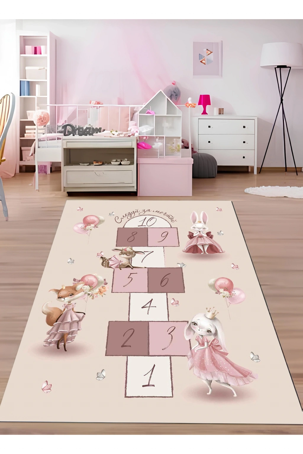 Sevimli tavşan figürleriyle süslenmiş, çocukların odasına neşe katan bir oyun halısı.; Dikdörtgen şekli sayesinde çocuk odalarının her köşesine kolayca uyum sağlar.; Figürlü tasarımı ile hem görsel bir şölen sunar hem de eğlenceli vakit geçirmeyi teşvik eder.; Dokuma taban yapısı, dayanıklılığı artırırken aynı zamanda yumuşak bir dokunuş hissi verir.; Bambu materyali doğal ve sağlıklı bir kullanım deneyimi sunarken, antialerjik özelliğiyle hassas ciltler için idealdir.; Düz saçak detayı ile modern ve temiz bir görünüm kazandırarak mekanın genel estetiğine katkıda bulunur.; Orta hav yüksekliği (6 - 12 mm),konforlu bir yürüyüş deneyimi sağlarken halının uzun ömürlülüğünü korur.; Makine halısı üretim tekniği ile üretilmiş olup, kalite standartlarına uygun olarak hazırlanmıştır.;