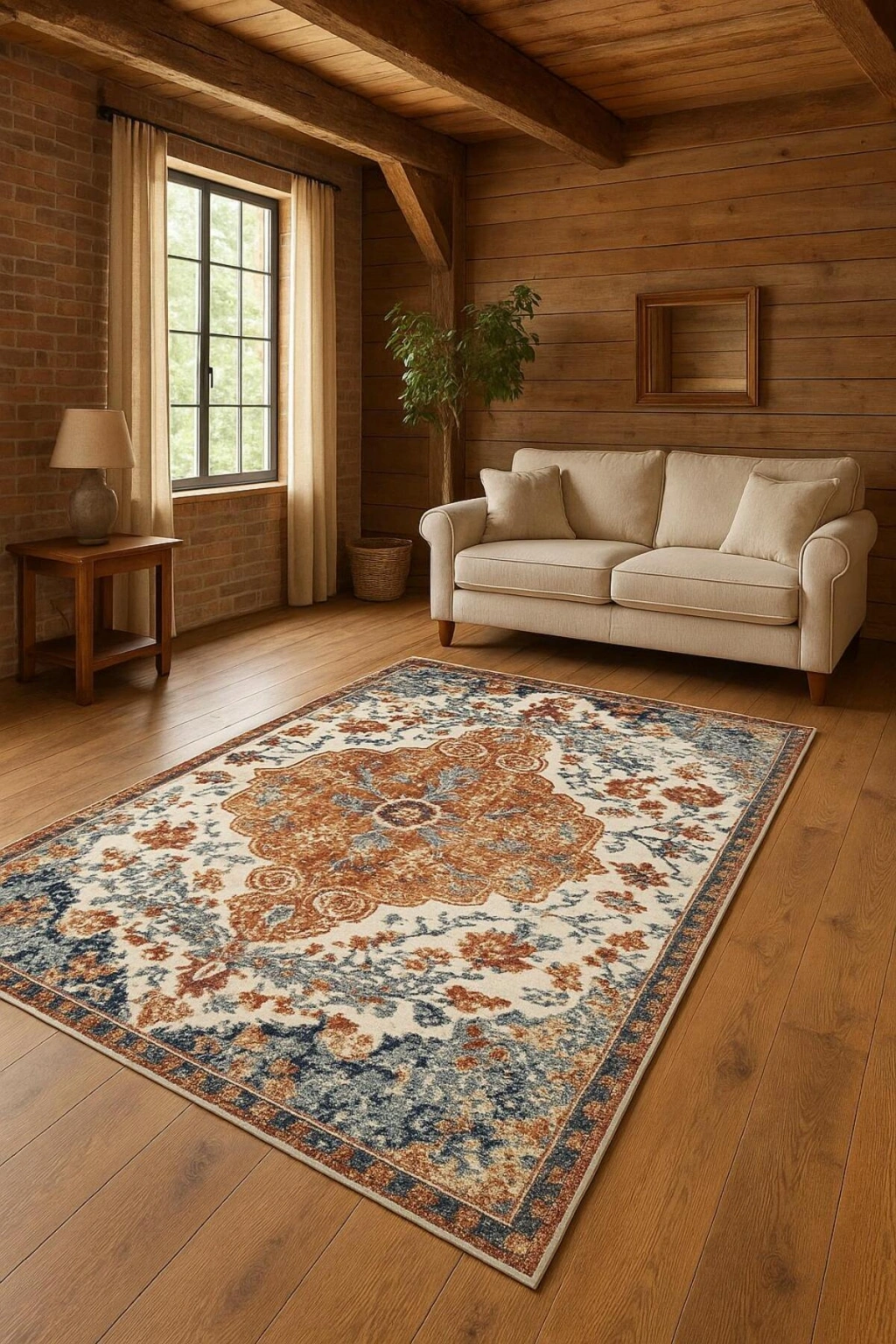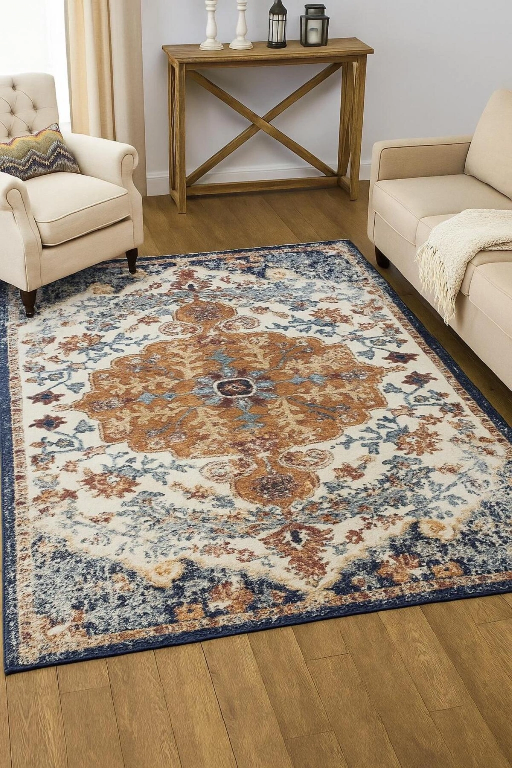 Vintage desenleriyle modern dekorasyonunuzu tamamlayan turuncu ve mavi renklerdeki bu halı, salon veya oturma odanızda şıklığı ve konforu bir arada sunar.; Zamansız bir tarz yansıtarak her türlü iç mekan tasarımına uyum sağlar.; İTHAL YÜKSEK HAVLI BAMBU KUMAŞ NANO TEKNOLOJİYLE ÜRETİLMİŞ OLUP HALI DUYGUSU VEREN HAVLI BİR YÜZEYE SAHİPTİR.; HİÇBİR ZEMİNDE KAYMA YAPMAZ.; KIL TOZ TÜY TOPLAMAZ TEMİZLENMESİ ÇOK KOLAYDIR.; SABUNLU BEZ İLE BİLE SİLİNİP TEMİZLENEBİLİR.; 30 DERECEDE MAKİNADA YIKANABİLİR DÖKÜLME YAPMAZ.; CANLI VE PARLAK DURUR.; HER MEVSİME UYGUN, ALERJİK OLMAYAN VE CİLDİ TAHRİŞ ETMEYEN BİR YAPISI VARDIR.; DOLGUN VE KENDİNİ BELLİ EDEN BİR YÜZEYE SAHİPTİR.; ÜST KISIM: YÜKSEK HAVLI BAMBU KUMAŞ.; ALT TABAN : PAMUK DOKUMA TABAN TOPLAM KALINLIK: 10-12 MM ARASI.; TOPLAM AĞIRLIK: 1500 GR/M2 Ağartıcı kullanmayınız